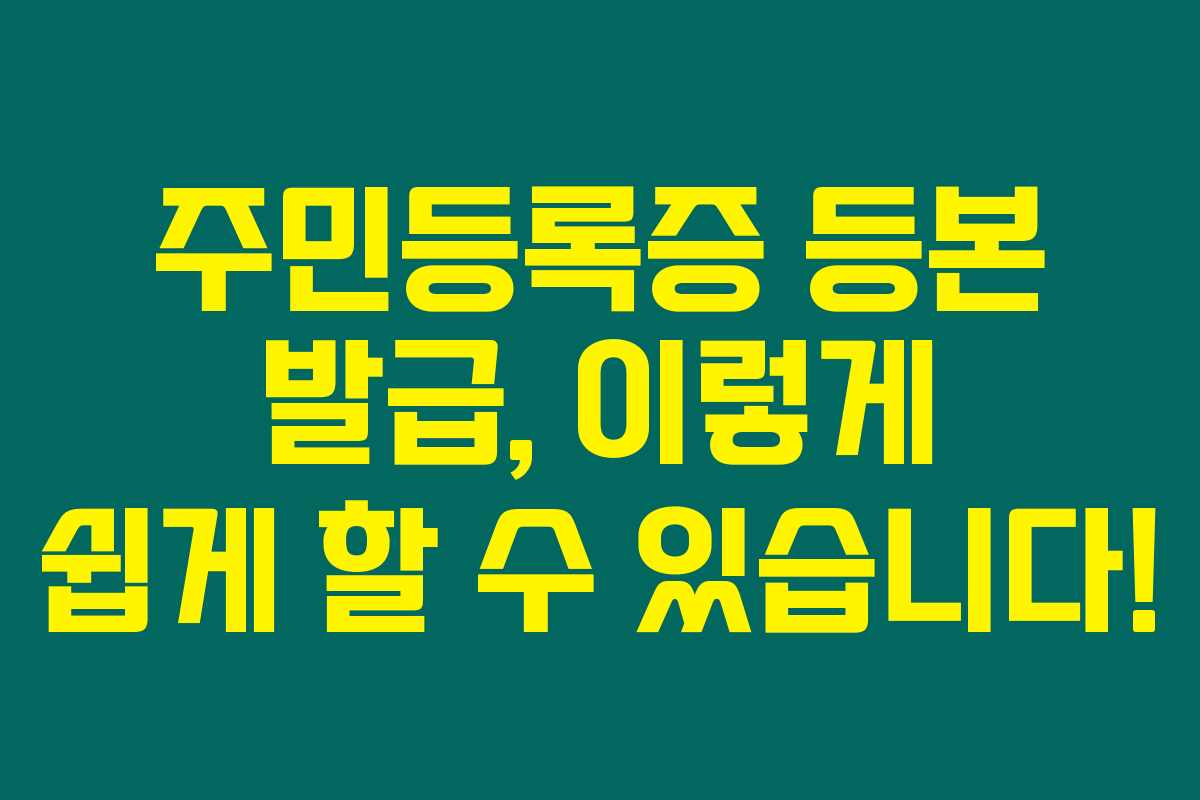 주민등록증 등본 발급 방법을 찾고 계신가요? 주민등록증 등본은 다양한 상황에서 필요한 서류인데요. 이 글을 통해 주민등록증 등본을 쉽게 발급받는 방법에 대해 알아보세요. 만약 주민등록증 등본을 발급받기 위해 여러 가지 방법을 고민하고 있다면, 아래를 읽어보시면 유용한 팁을 확인할 수 있답니다!