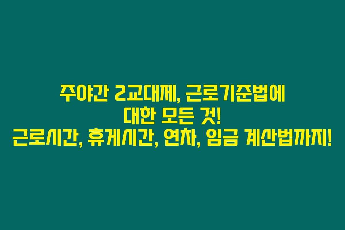 제가 직접 경험해본 결과로는, 주야간 2교대제는 많은 직장인들이 필수적으로 알아야 할 중요한 제도입니다. 이에 대한 근로기준법을 바탕으로 근로시간, 휴게시간, 연차, 임금 계산법 등을 상세히 소개해 드릴게요. 아래를 읽어보시면 주야간 2교대제에 대한 모든 정보를 얻으실 수 있습니다.