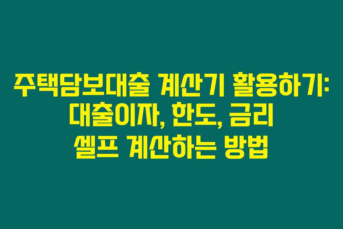제가 직접 경험해본 결과로는, 주택담보대출을 고려할 때 주택담보대출 계산기를 활용하는 것이 매우 유용하답니다. 이 계산기를 통해 내가 대출할 수 있는 한도와 매달 갚아야 할 이자를 손쉽게 확인할 수 있어요. 아래를 읽어보시면 대출 이자, 한도, 금리를 셀프로 계산하는 방법에 대해 자세히 알아보실 수 있습니다.