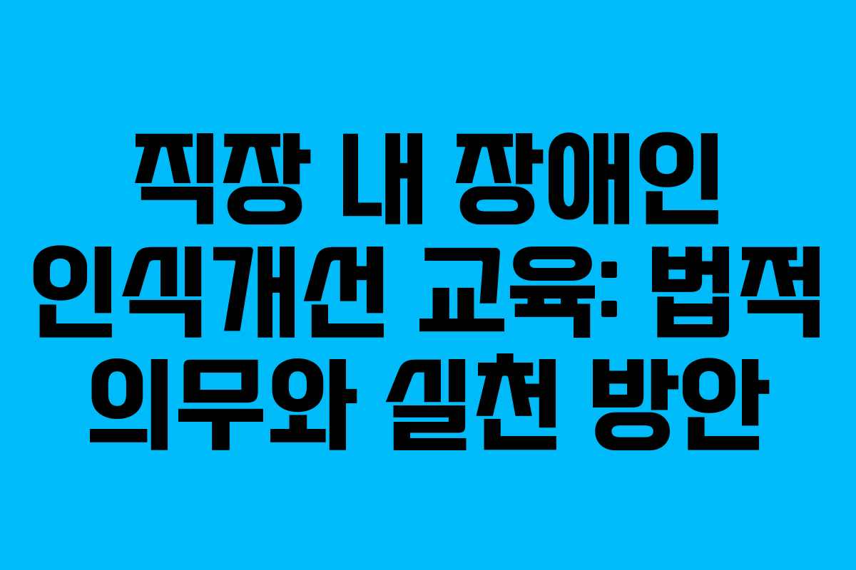 직장 내 장애인 인식개선 교육: 법적 의무와 실천 방안