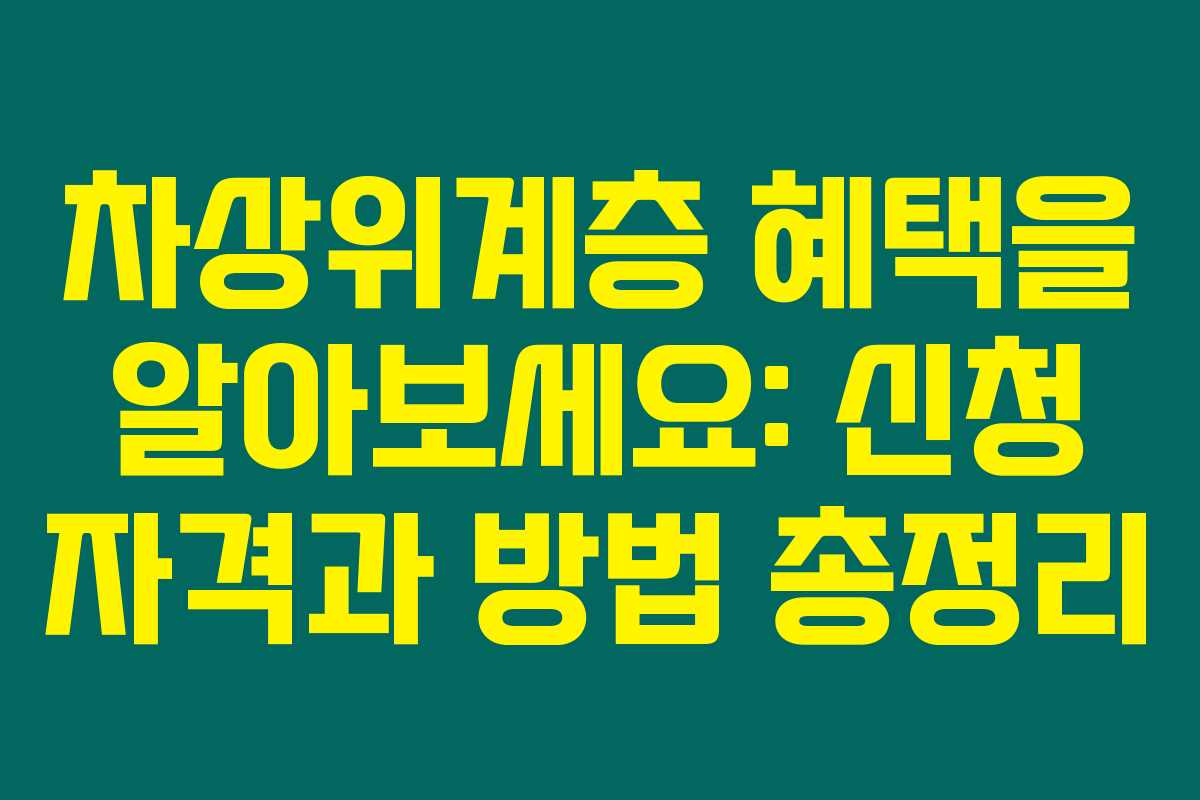제가 알아본 바로는 차상위계층은 저소득 가구를 위한 중요한 복지 정책으로, 소득이 기준 중위소득의 50% 이하인 분들에게 여러 지원 혜택을 제공합니다. 신청하지 않으면 혜택을 받을 수 없으니, 아래를 읽어보시면 해당 자격이 되시는 분들은 꼭 신청하시길 바랍니다.