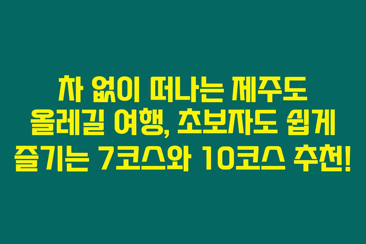 차 없이 여행 중이라면 제주도에서는 이 코스를 꼭 가보셔야 해요! 막상 찬란한 경치를 즐길 수 있는 제주도 올레길 7코스와 10코스는 초보자도 쉽게 접근할 수 있는 최적의 선택이에요. 아래를 읽어보시면 올레길 코스마다의 매력과 필수 여행 팁을 모두 확인할 수 있습니다.