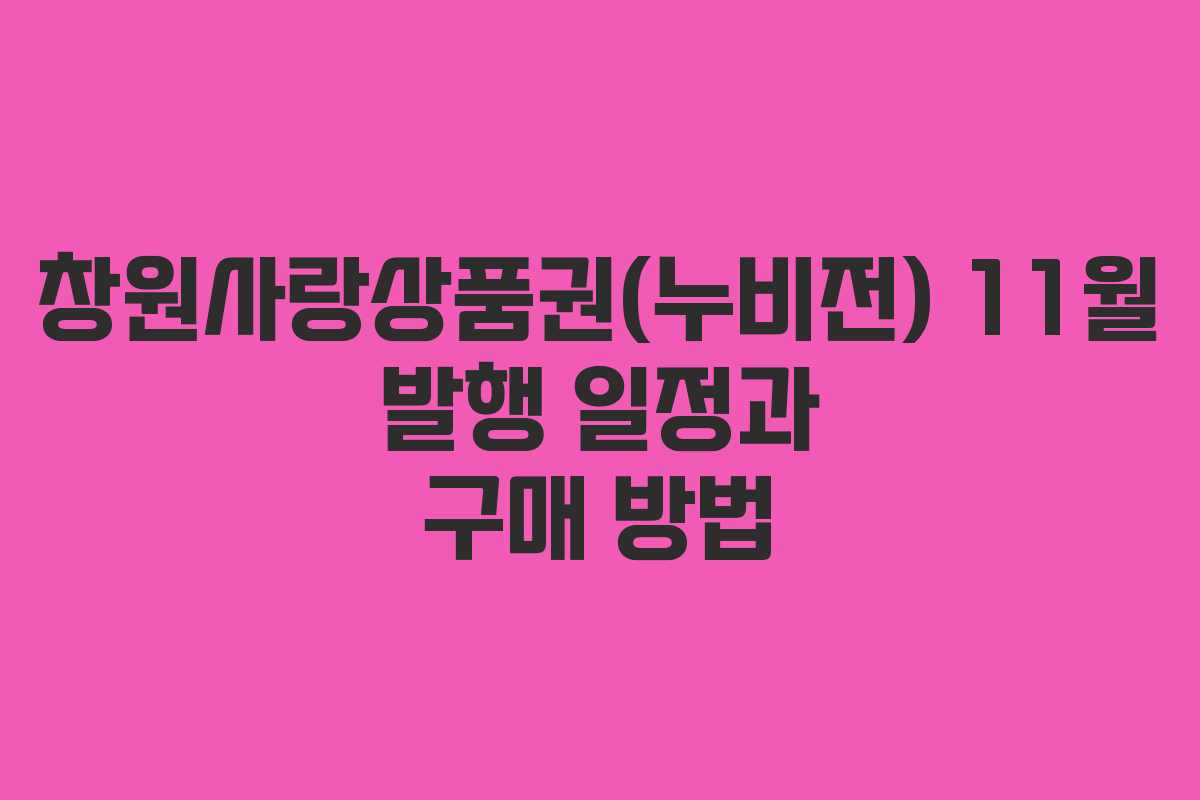 11월에 발행되는 창원사랑상품권(누비전)의 정보와 혜택을 정리했습니다. 이 상품권은 현금보다 7% 할인된 가격으로 구매할 수 있는 지역화폐로, 창원시민이 경제적 부담을 줄이고 지역 경제를 활성화하는 데 기여하고 있습니다.