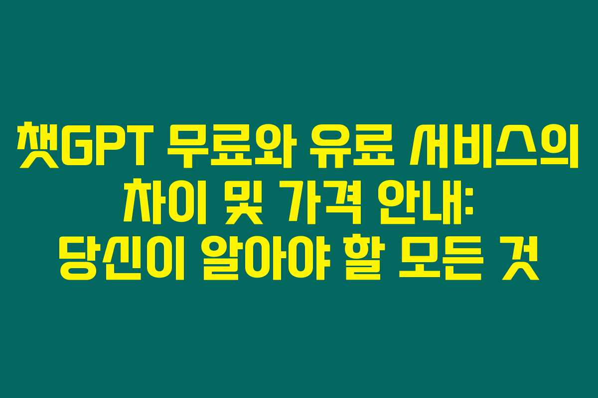 제가 판단하기로는, 챗GPT에 대한 무료와 유료 버전 사이의 차이점과 가격에 대해서 심도 있게 알아본 결과로는, 많은 사람들이 이 서비스를 선택함에 있어 도움을 줄 수 있는 정보입니다. 각각의 특징과 가격 대비 장점 등을 명확히 알리기 위해 아래 내용을 정리해봤어요.