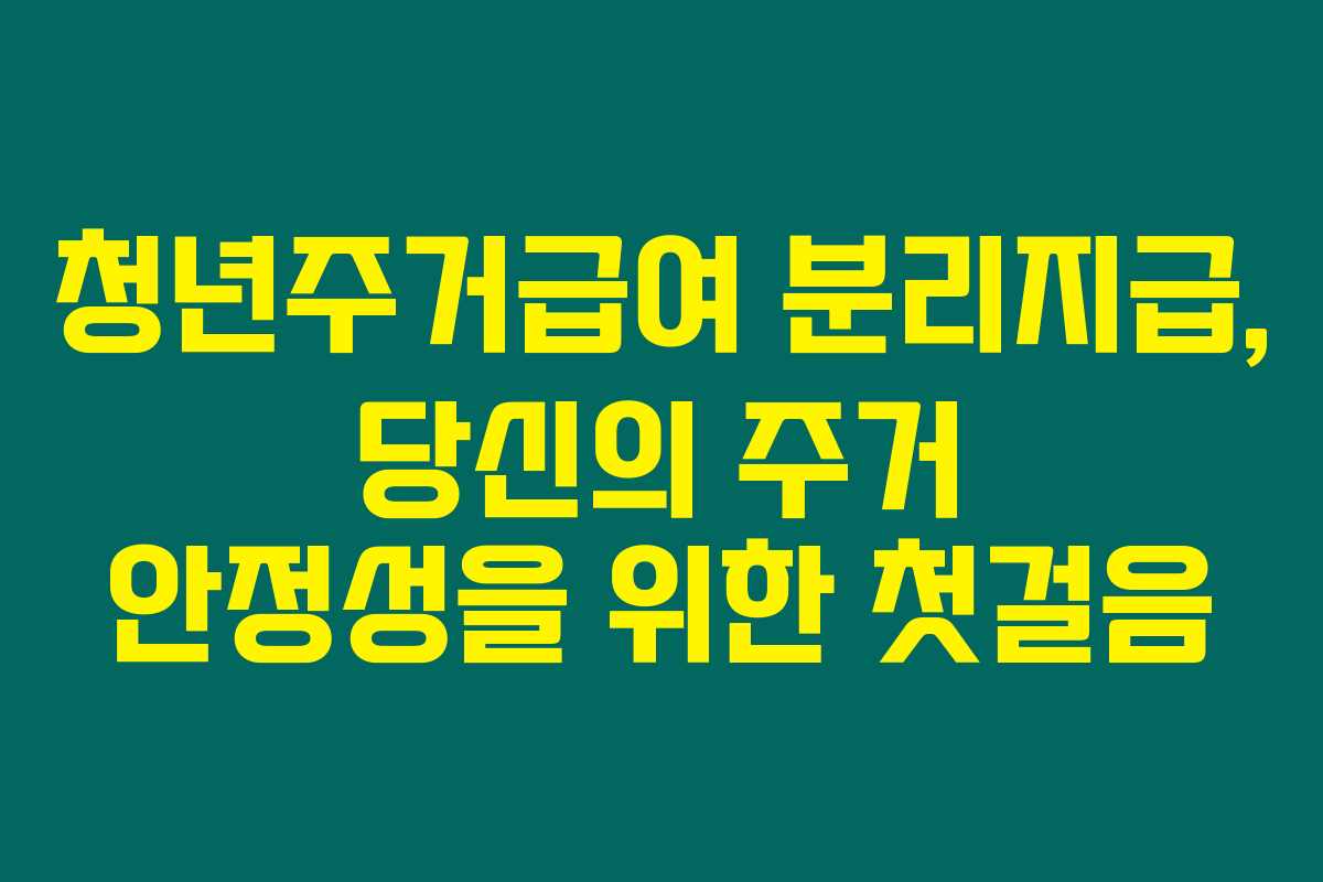 청년주거급여 분리지급 조건: 자격을 확인해보세요