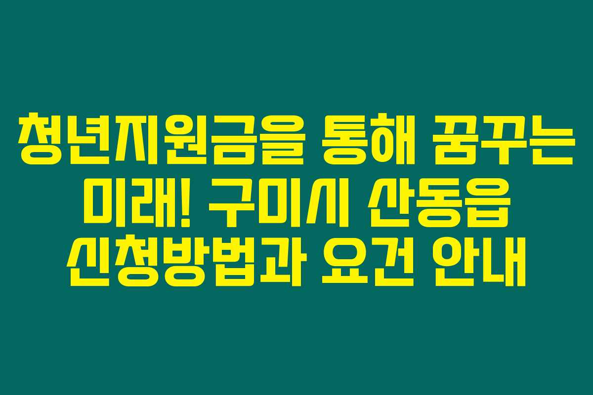 구미시 산동읍에서 청년지원금을 받기 위해선 몇 가지 기본 요건을 충족해야 해요: