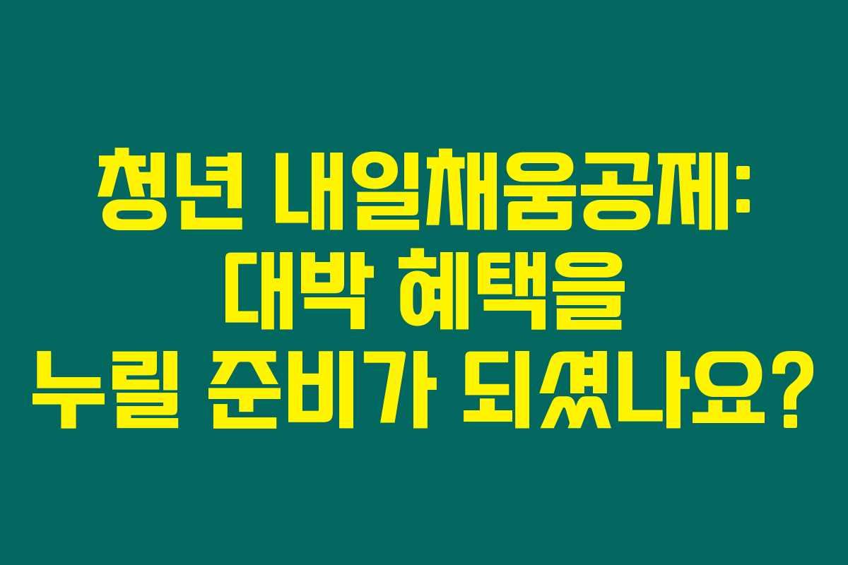 청년 내일채움공제: 대박 혜택을 누릴 준비가 되셨나요?