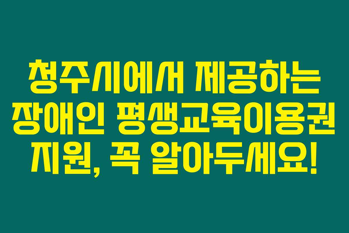 제가 직접 체크해본 바로는 청주시의 장애인 평생교육이용권 지원 프로그램이 지역 장애인들에게 수업을 통한 자기 계발의 기회를 제공하고 있다는 것을 알게 되었습니다. 특히 이번 2차 지원에 대한 정보는 지원금액도 적지 않고, 지원대상도 확대되어 많은 이들에게 도움이 될 것 같아요. 앞으로 자세한 내용을 아래를 읽어보시면 더욱 쉽게 이해하실 수 있을 거예요.