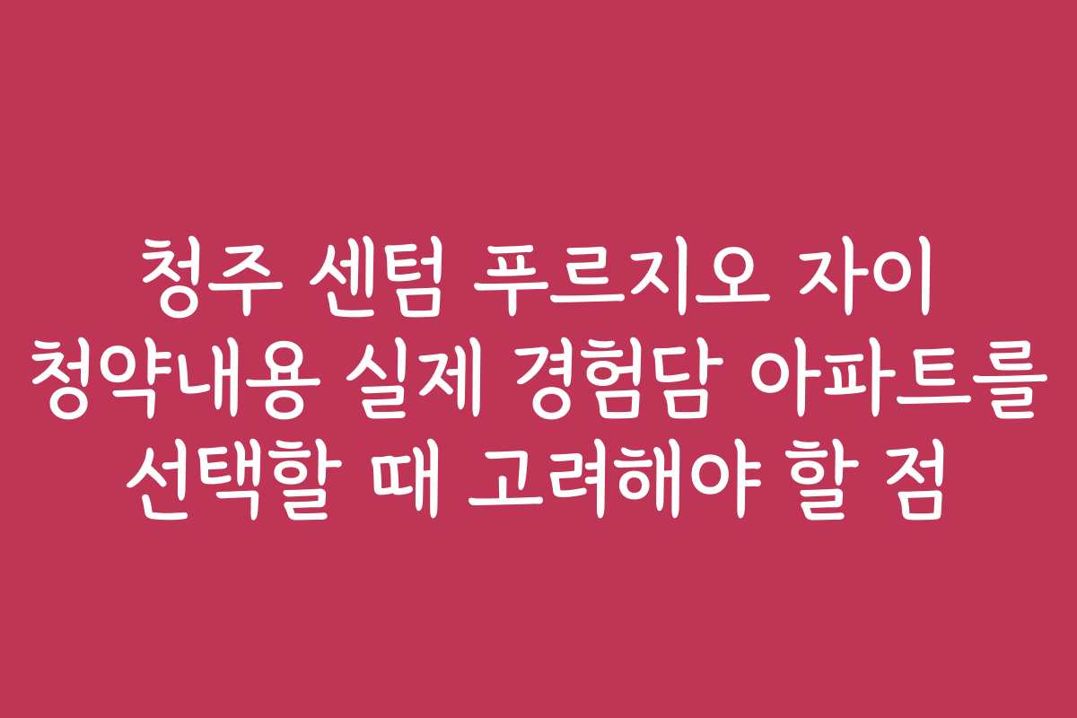 태그: 청주 센텀 푸르지오 자이, 청약 후기를 통한 경험, 아파트 선택 시 고려할 점, 청약 경쟁률 분석, 주택 청약 필수 정보, 아파트 청약 전략, 추천 아파트 리스트, 주택 구매 팁, 실거주 아파트 추천, 청주 아파트 비교, 청약 시장 동향