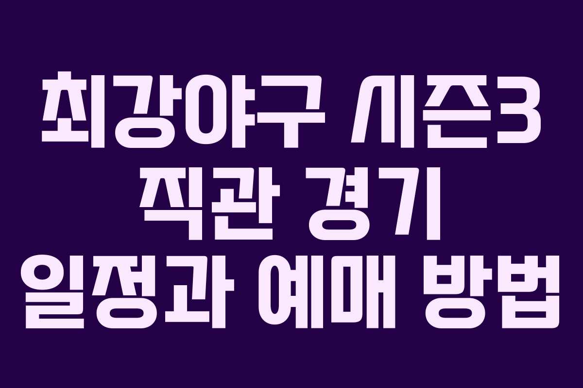 최강야구 시즌3가 돌아오면서 많은 팬들이 기다려온 직관 경기 일정이 공개되었습니다. 이번 시즌에는 총 세 번의 직관 경기가 예정되어 있으며, 각 경기의 일정과 예매 방법에 대해 알아보겠습니다.