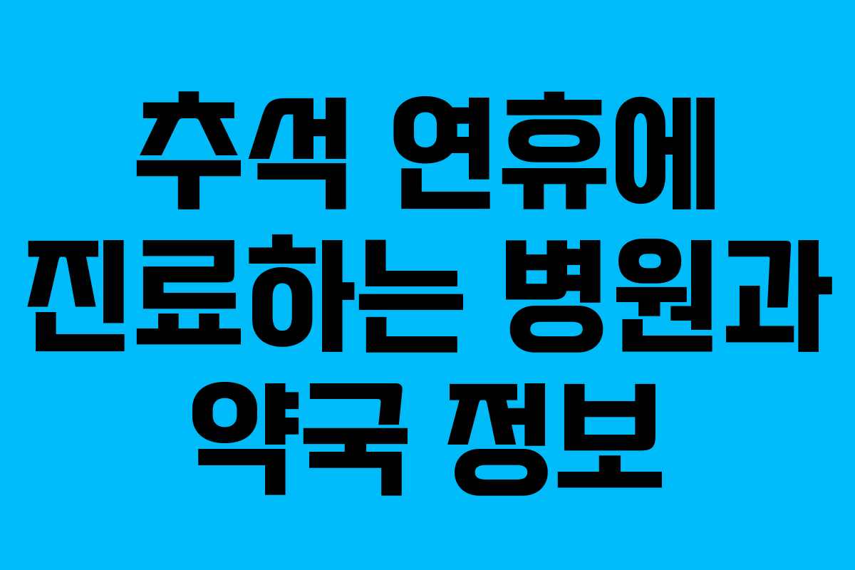 추석 연휴 동안 진료하는 병원은 각 지역별로 운영되며, 사전에 확인 후 방문하는 것이 좋습니다.