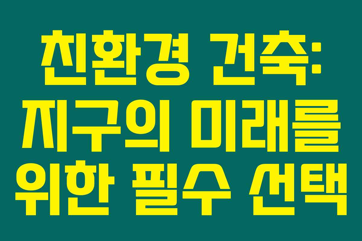 친환경 건축은 우리의 미래를 위해 꼭 필요한 선택입니다. 인간과 자연이 공존하는 삶을 위해, 지속 가능한 건축 방법을 선택해야 할 때입니다.