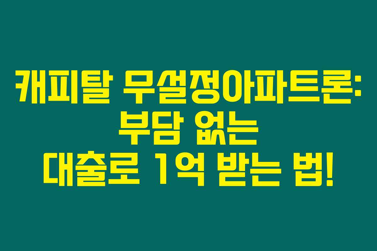 캐피탈 무설정아파트론: 부담 없는 대출로 1억 받는 법!