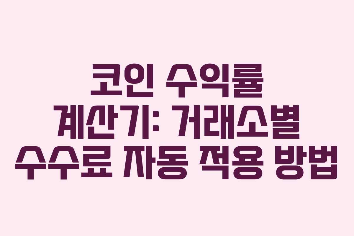 코인 수익률 계산기: 거래소별 수수료 자동 적용 방법