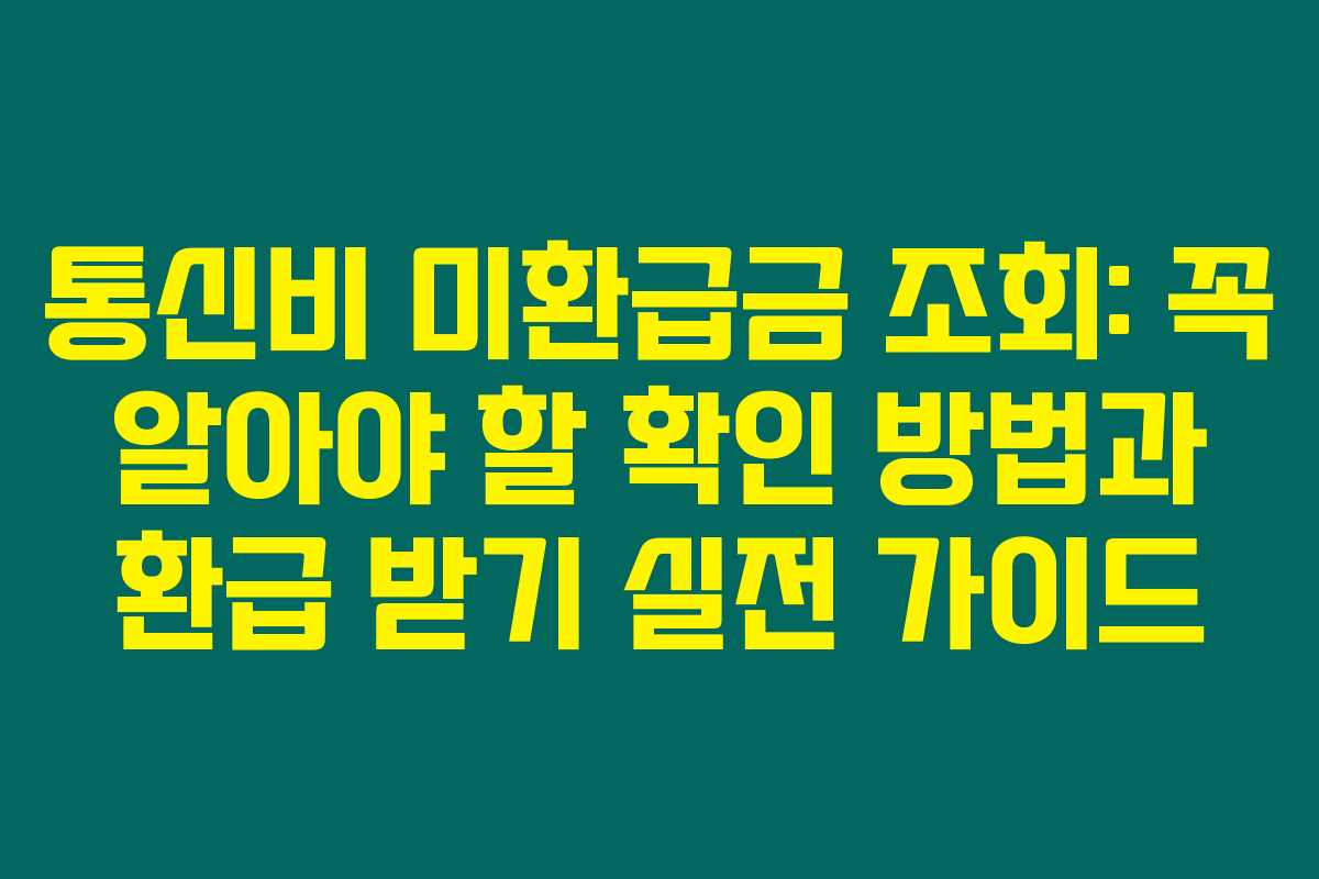 통신비 미환급금 조회: 꼭 알아야 할 확인 방법과 환급 받기 실전 가이드