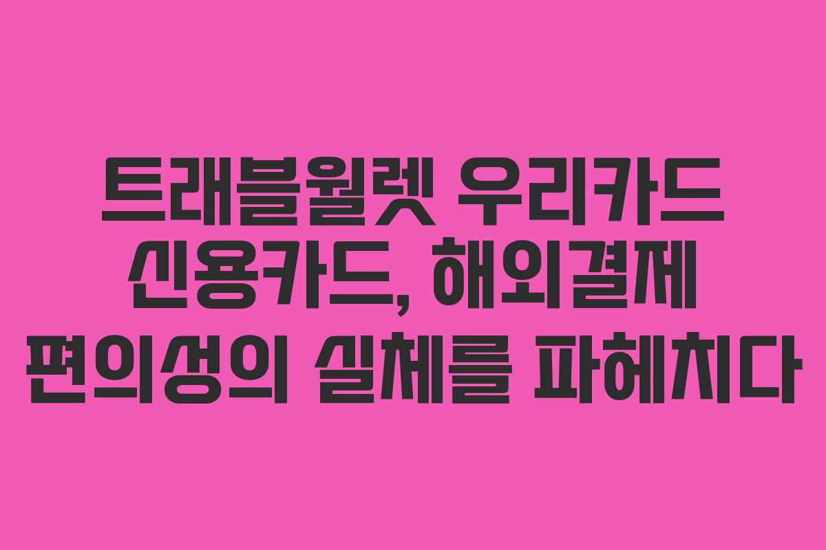 - 트래블월렛 우리카드의 실제 사용 사례와 체감 포인트