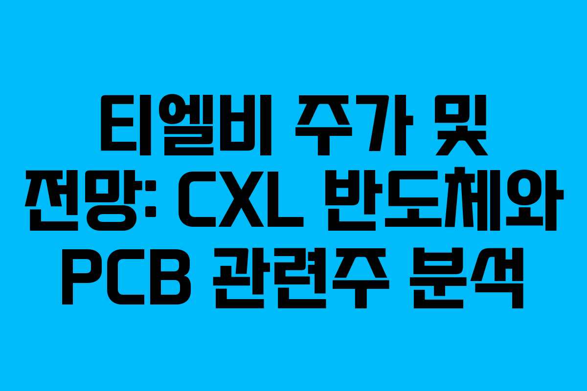 티엘비 주가와 CXL 반도체 관련주, PCB 관련주에 대한 정보를 종합적으로 분석해 보겠습니다. 최근 반도체 업계의 동향과 기업의 재무 상황을 통해 투자자들에게 유용한 정보를 제공하고자 합니다.