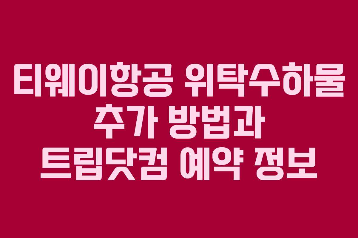 여행을 계획하면서 티웨이항공을 이용할 경우, 위탁수하물 추가 방법과 트립닷컴을 통한 예약 절차를 잘 이해하는 것이 중요합니다. 이 글에서는 관련 정보와 유의사항을 자세히 설명하겠습니다.