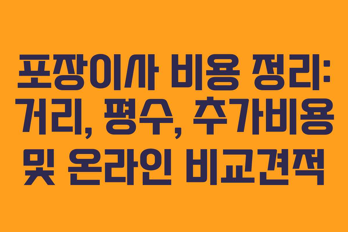 포장이사를 계획 중이라면 비용을 미리 파악하는 것이 중요합니다. 본 글에서는 포장이사 비용에 대한 정보를 거리, 평수, 추가 비용, 온라인 비교견적 방법 등을 정리하여 제공합니다.