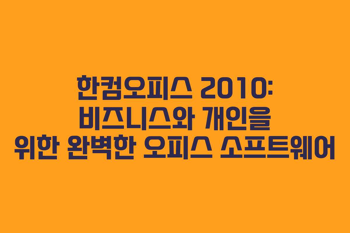 한컴오피스 2010은 국내에서 널리 사용되는 오피스 소프트웨어로, 다양한 문서 작업을 지원합니다. 특히 한글(HWP) 파일에 대한 뛰어난 호환성 덕분에 많은 사용자들에게 사랑받고 있습니다. 이 소프트웨어는 비즈니스, 학술, 개인 용도로 모두 적합하며, 그 유용성은 여러 사용자 리뷰를 통해 입증되었습니다.