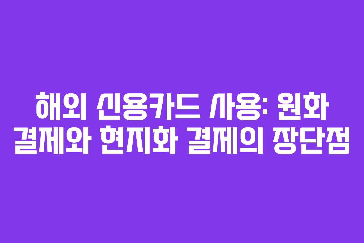 해외여행을 준비하면서 신용카드 사용은 매우 유용한 방법입니다. 하지만 결제 방식에 따라 비용이 달라질 수 있으므로, 신중한 선택이 필요합니다. 특히, 원화 결제와 현지화 결제의 차이를 이해하는 것이 중요합니다.