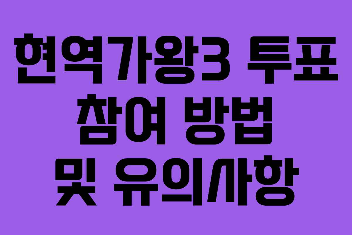 최근 음악 프로그램 ‘현역가왕3’은 시청자들의 직접적인 참여로 많은 관심을 받고 있습니다. 그중에서도 투표는 팬들이 결과에 영향을 미치는 가장 중요한 방식입니다. 이번 포스팅에서는 현역가왕3의 투표 방식과 참여 절차, 그리고 주의사항을 정리해 보겠습니다.
