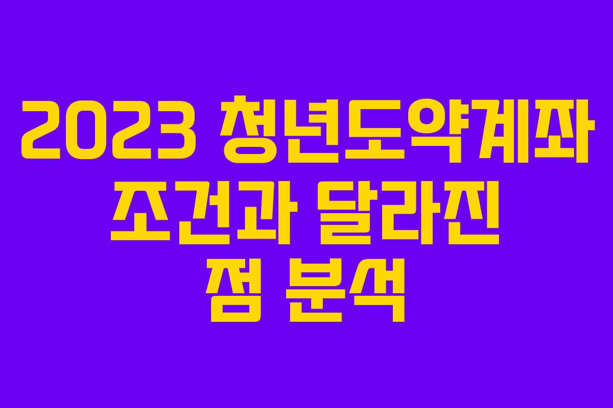 2023년 청년도약계좌는 청년들의 자산 형성을 지원하기 위해 출시될 예정입니다. 이번 글에서는 청년도약계좌의 조건, 주요 변경 사항, 아쉬운 점 등을 자세히 살펴보겠습니다.