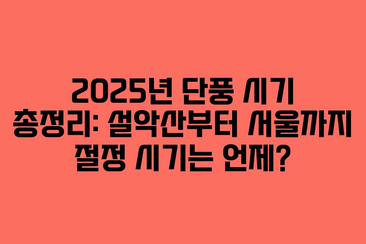 2025년의 첫 단풍은 9월 30일에 설악산에서 시작됩니다. 전국적으로 단풍이 가장 아름다워지는 시기는 대개 10월 중순부터 11월 초까지입니다. 이 시기를 기준으로 계획을 세우면 좋습니다.