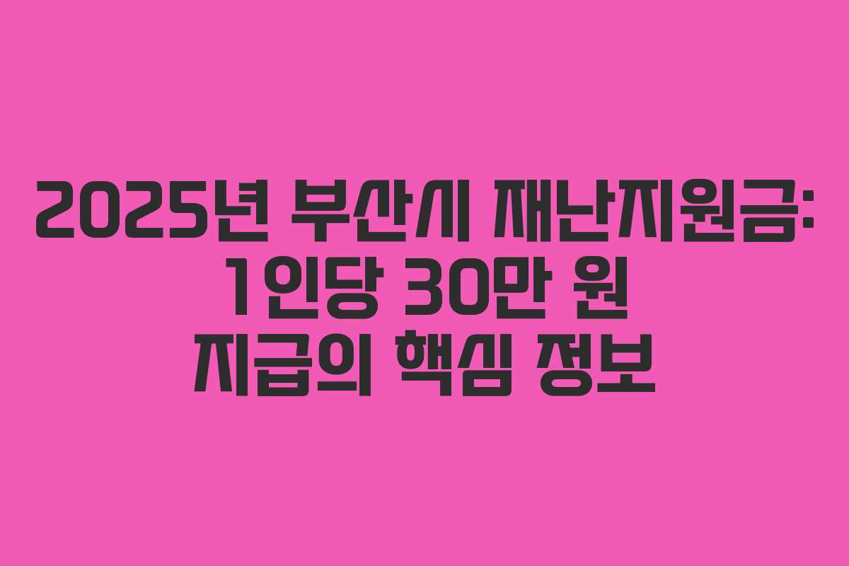 2025년 부산시 재난지원금: 1인당 30만 원 지급의 핵심 정보
