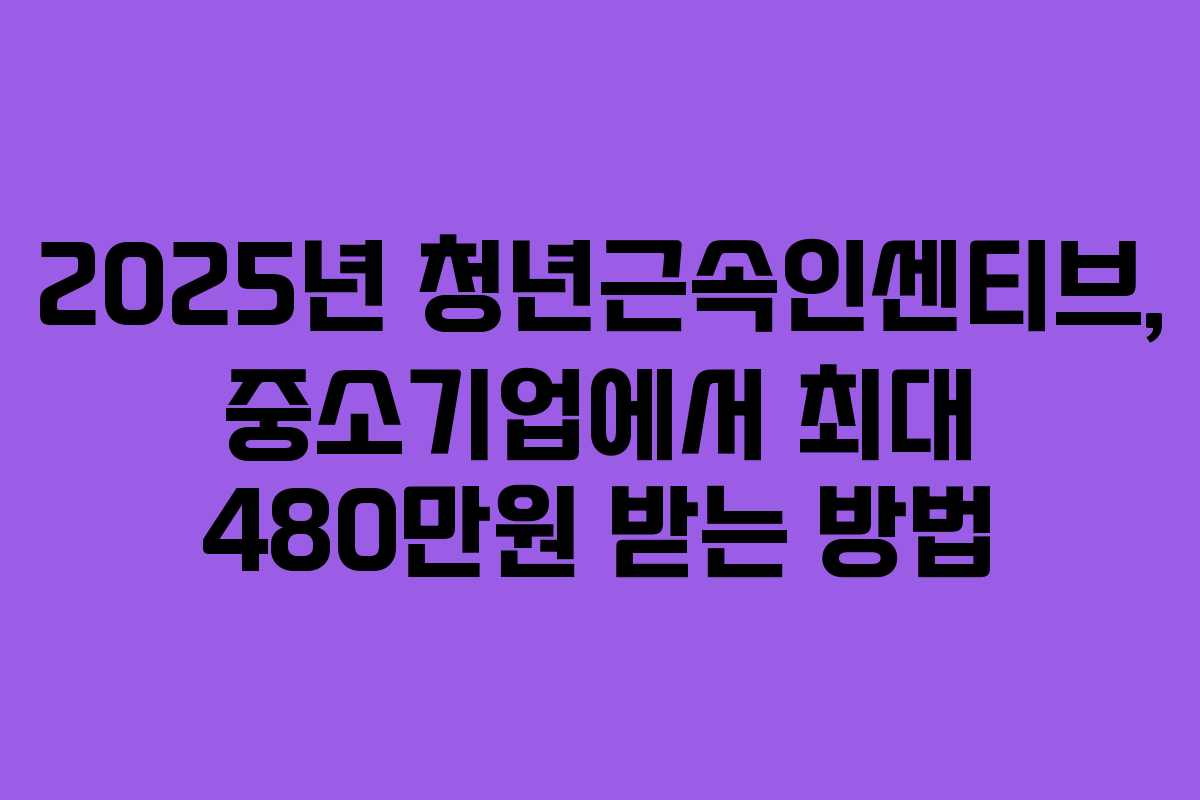 2025년부터 청년근속인센티브 제도가 시행되어 중소기업에서 장기 근속하는 청년들에게 최대 480만 원의 인센티브를 지급합니다. 이 제도는 청년들이 중소기업에 오래 근무하도록 유도하기 위한 정책으로, 기업과 청년 모두에게 혜택을 제공합니다.