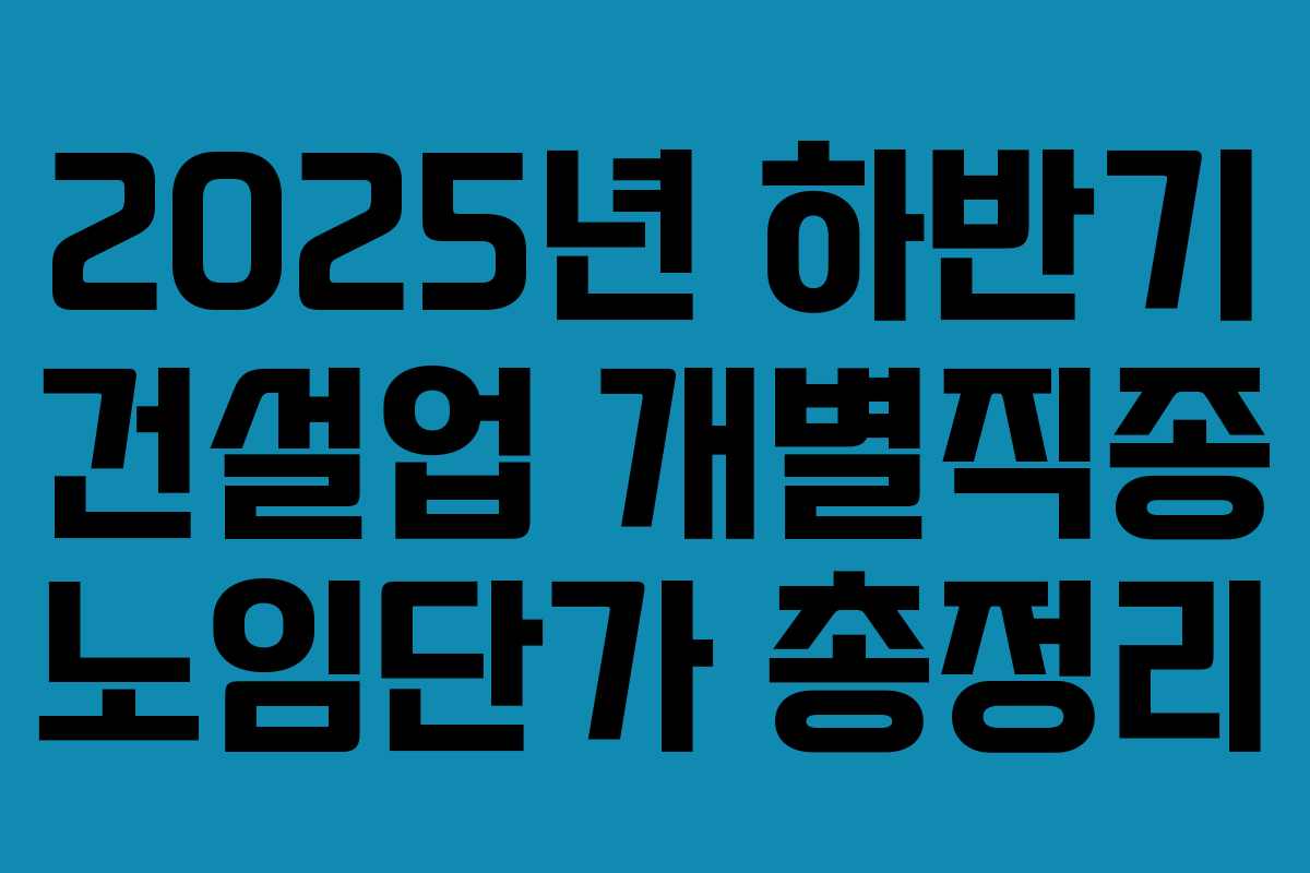 2025년 하반기 건설업 개별직종 노임단가 총정리