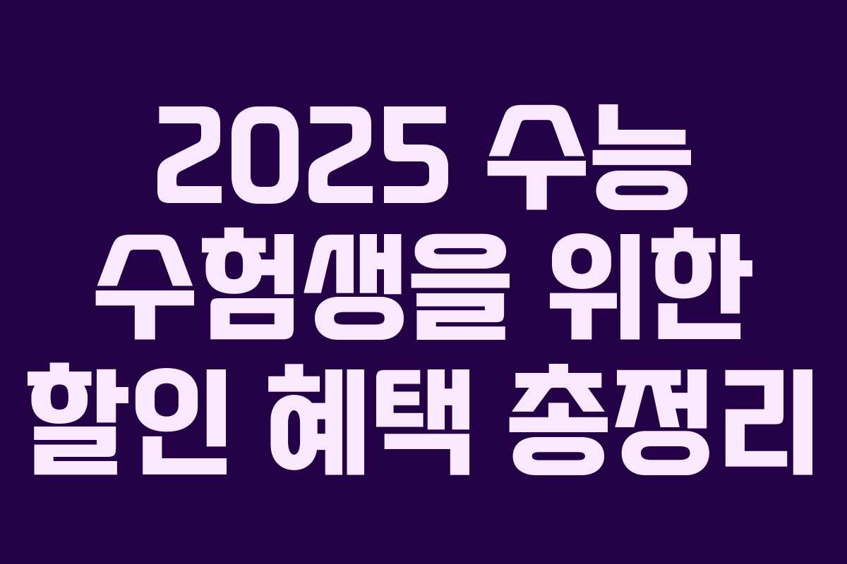 2024년도 수능을 치른 수험생들을 위한 다양한 할인 혜택이 마련되었습니다. 민간 기업부터 정부 차원까지, 수험생들이 누릴 수 있는 할인 내용을 정리했습니다. 할인 기간은 각기 다르니 주의 깊게 확인해 보시기 바랍니다.