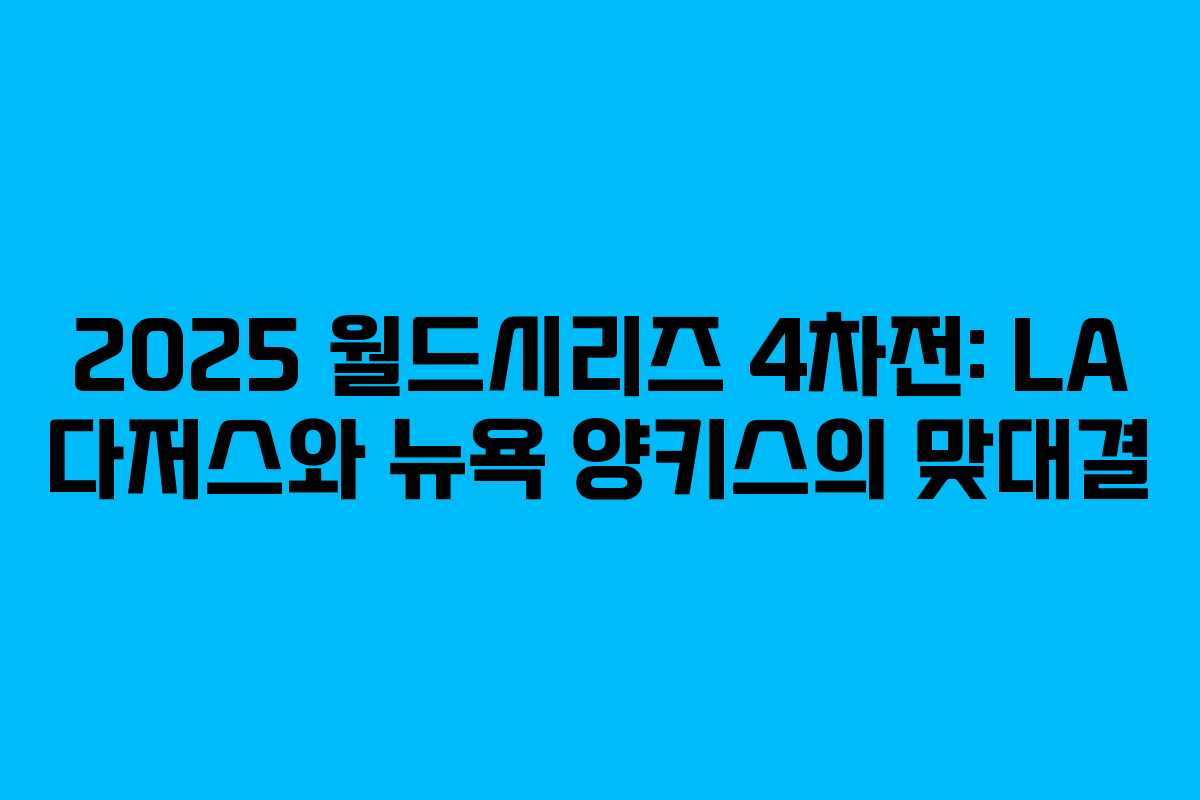 2024년 10월 30일, 야구팬들이 기다려온 월드시리즈 4차전이 뉴욕 양키 스타디움에서 열립니다. LA 다저스와 뉴욕 양키스 간의 치열한 승부는 시리즈의 향방을 결정짓는 중요한 순간이 될 것입니다. 다저스는 연승을 이어가며 우승을 노리고 있으며, 양키스는 홈에서의 반격을 다짐하고 있습니다.