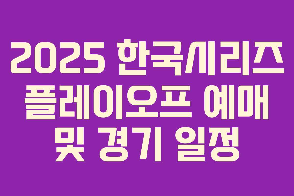 2025 한국시리즈 플레이오프 예매 및 경기 일정