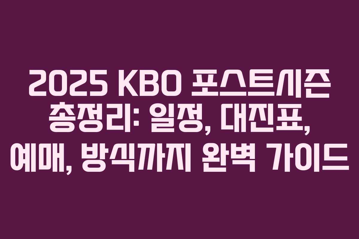 2025 KBO 포스트시즌 총정리: 일정, 대진표, 예매, 방식까지 완벽 가이드