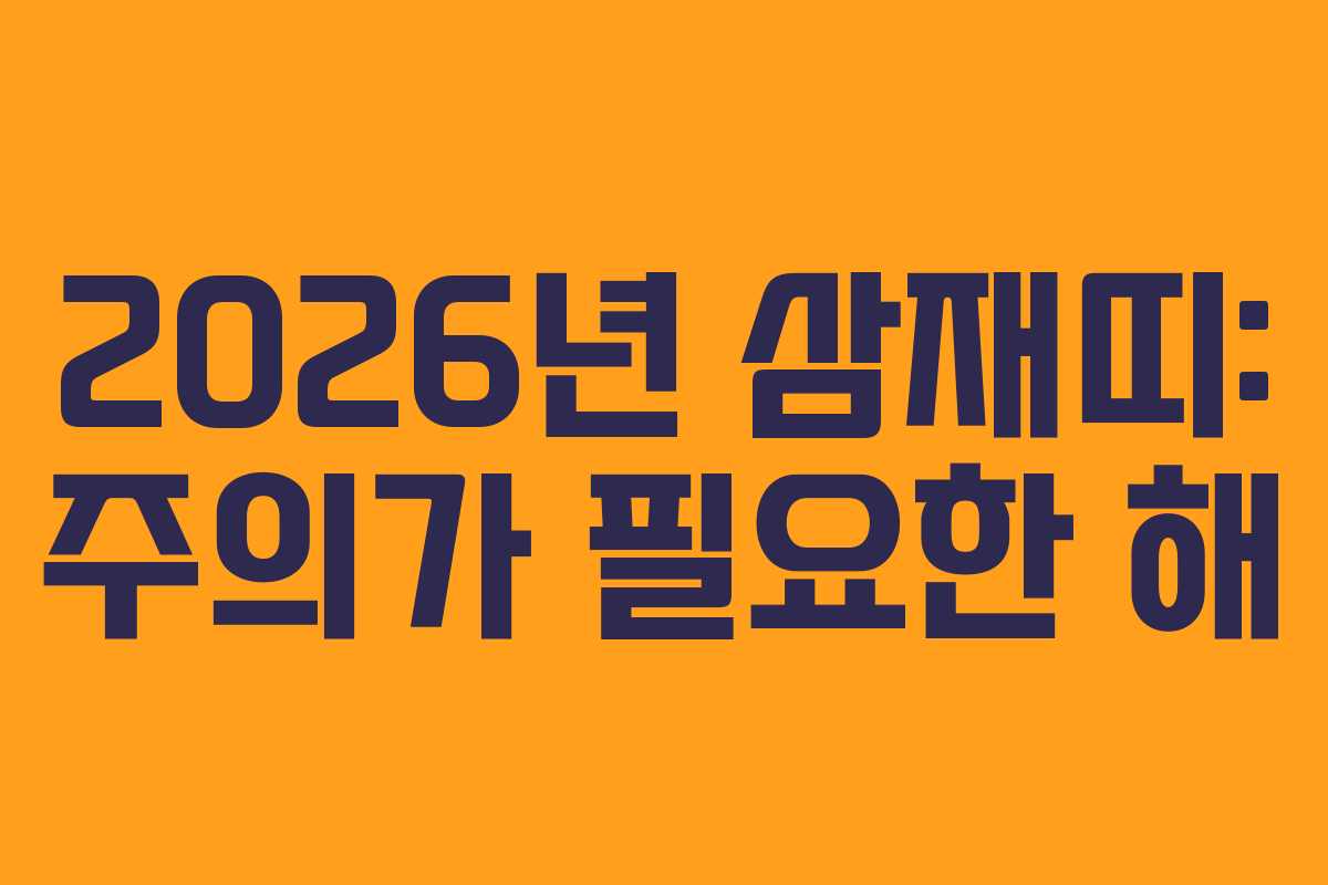 2026년은 토끼띠, 양띠, 돼지띠에 해당하는 삼재띠가 눌삼재에 해당하는 해입니다. 이번 해는 특별히 조심해야 할 시기로, 사고와 근심이 지속될 가능성이 높아 주의가 요구됩니다.