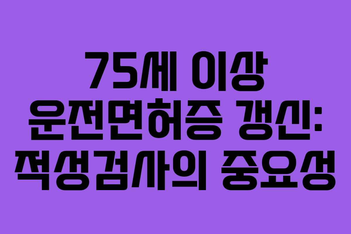 75세 이상의 고령자가 운전면허증을 갱신하기 위해서는 적성검사를 반드시 받아야 합니다. 이는 고령 운전자의 안전을 보장하기 위한 필수 절차로, 신체적 및 정신적 변화로 인해 운전 능력이 저하될 수 있는 점을 고려한 것입니다.