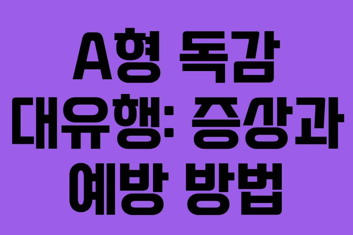 A형 독감의 주요 증상은 고열, 근육통, 두통, 기침, 인후통 등이 있으며, 일반 감기와는 달리 전신 증상이 동반됩니다.