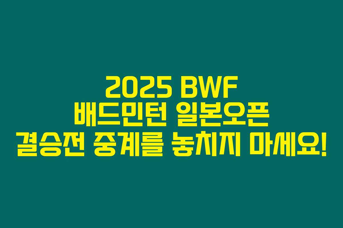 2025 BWF 배드민턴 일본오픈 결승전 중계를 놓치지 마세요!