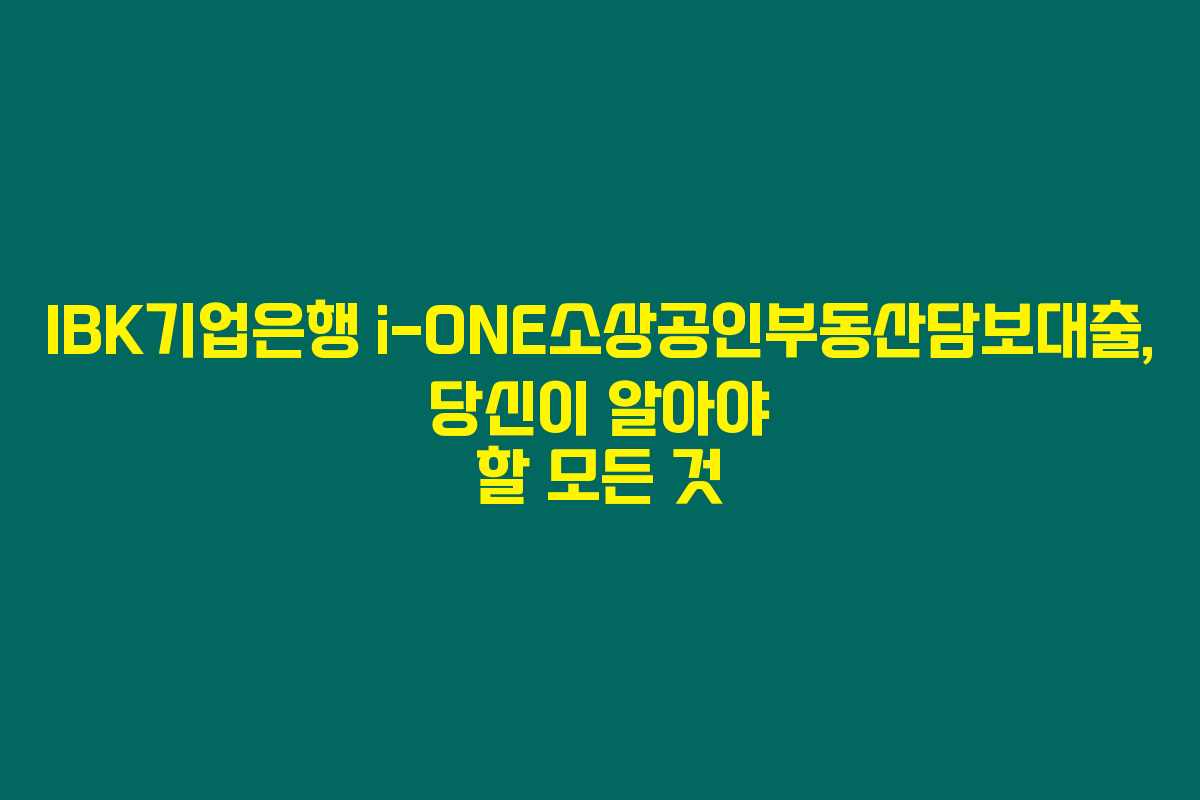 제가 직접 리서치한 바로는, 최근 소상공인들이 자금을 마련하는 데 있어 IBK기업은행의 i-ONE소상공인부동산담보대출이 아주 유용한 선택지가 되고 있습니다. 특히 아파트를 담보로 하여 비대면으로 간편하게 대출을 받을 수 있어 많은 소상공인들에게 관심을 받고 있어요. 아래를 읽어보시면 이 대출 상품의 대상, 한도, 금리, 담보 요건, 우대 혜택에 대해 더욱 자세히 알아보실 수 있습니다.