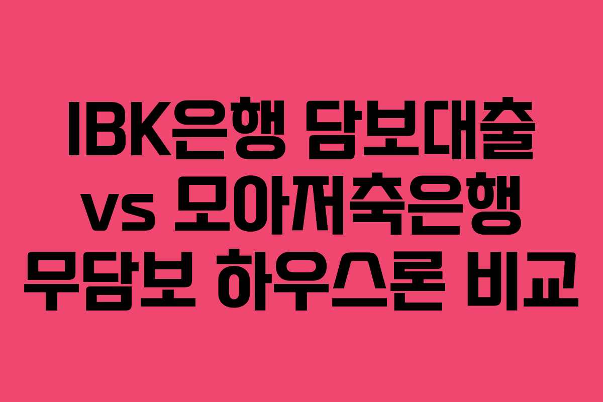 급전이 필요할 때, 많은 사람들이 대출을 고려하게 됩니다. 이때 선택할 수 있는 옵션 중 하나는 모기지론, 즉 담보대출입니다. 오늘은 IBK은행의 담보대출과 모아저축은행의 무담보 하우스론 상품을 비교해보겠습니다. 두 상품의 특징을 이해하고, 어떤 상황에서 더 적합한지를 알아보는 것이 중요합니다.