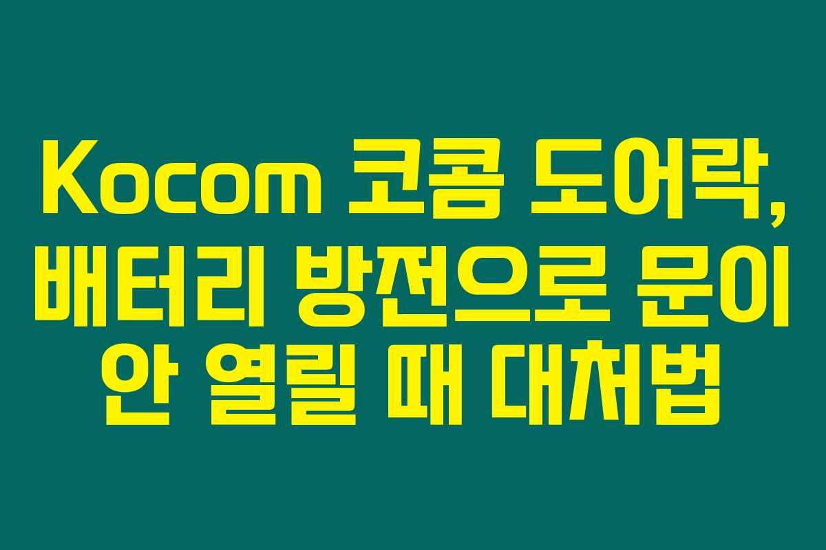 Kocom 코콤 도어락의 배터리 방전으로 인한 문제 해결 방안에 대해 알려드렸습니다. 이 정보를 바탕으로 빠르게 문제를 해결하고, 안전한 생활을 하실 수 있길 바랍니다. 언제든지 추가적인 도움이 필요하시다면 편안하게 문의주세요!