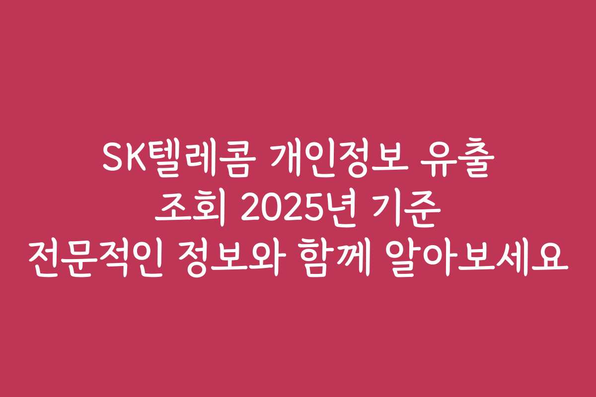 2025년 기준 SK텔레콤 개인정보 유출 조회를 위한 첫걸음