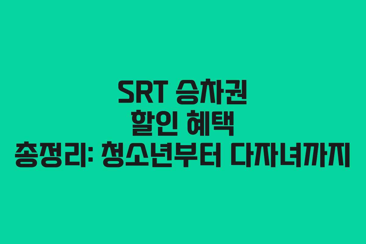SRT 승차권은 다양한 할인 혜택을 제공하여 승객들이 더욱 저렴하게 이용할 수 있는 기회를 제공합니다. 청소년부터 다자녀 가구까지, 다양한 할인 혜택을 정리해 보았습니다.